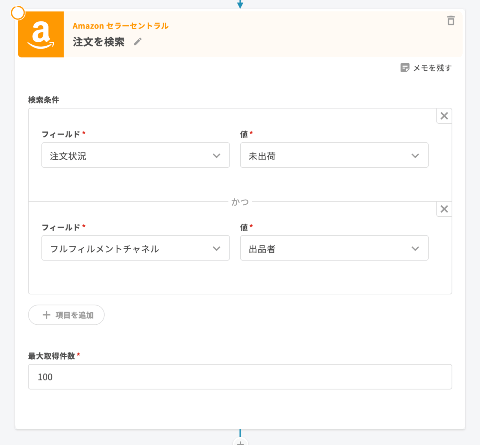 自己発送(出品者出荷)の注文かつ、未出荷のものに限定して情報を取得してきます。